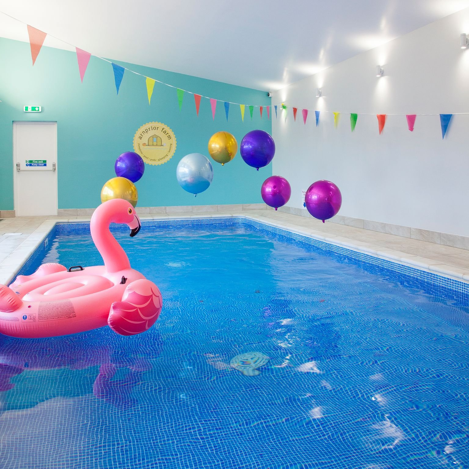 Our glamping pod site features a huge 10x4m private and heated indoor swimming pool with panoramic windows overlooking our farm, it is the perfect spot for a luxury secluded swim.