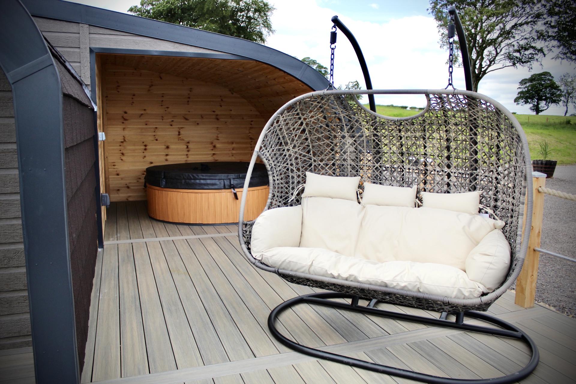 On farm holiday cottage and glamping pods with hot tubs with a strong emphasis on sustainability and shopping local. Situated on a working beef farm.