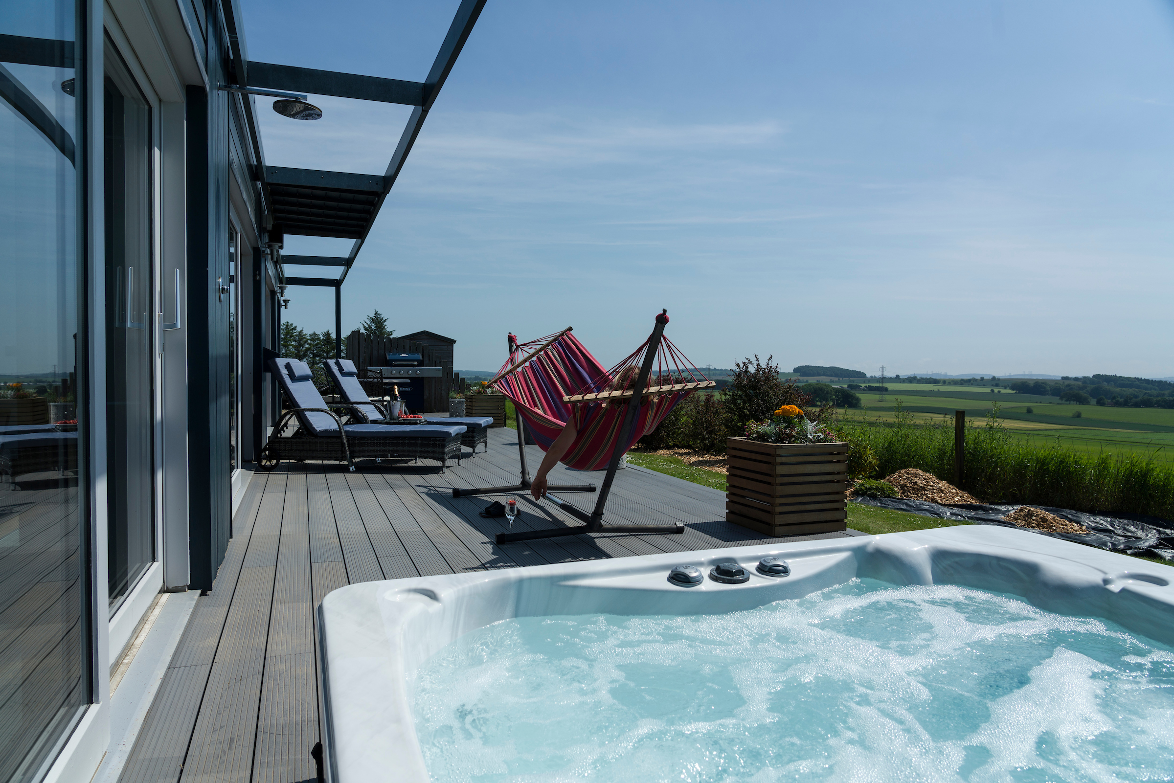 Adult only agritourism resort with five Hideaways accredited 5 star by Visit Scotland. Each property has a double bath, sauna, hot tub, wood-burning stove, cocktail bar and large private garden.